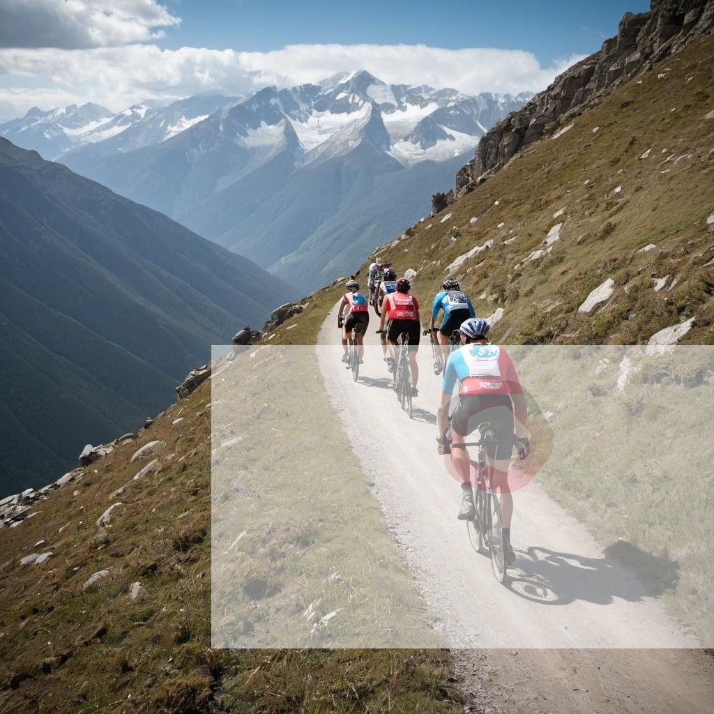 A group of cyclists racing through a challenging mountain trail