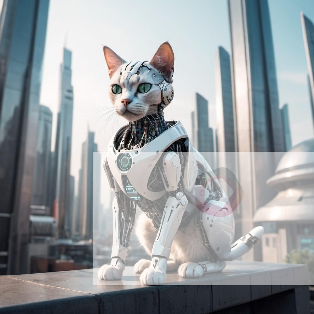 futuristic robot warrior in a battle stance, with intricate armor and glowing blue eyes, in a sci-fi setting