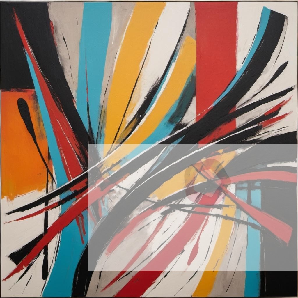 An abstract painting with bold brushstrokes in red, blue, and yellow
