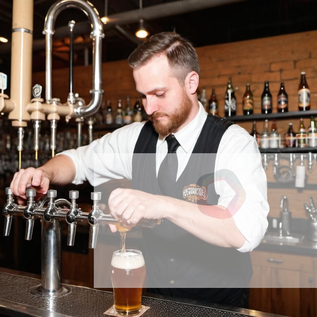 A bartender pouring craft beer from taps at a brewery