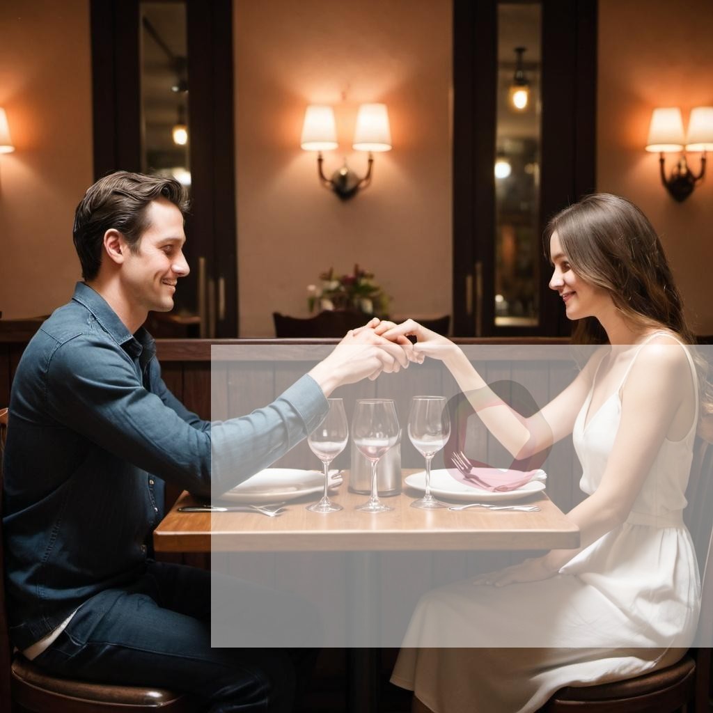A couple holding hands across the table in a romantic restaurant