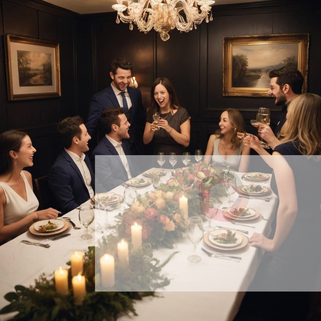 A group of people enjoying a tasting menu at a gourmet restaurant
