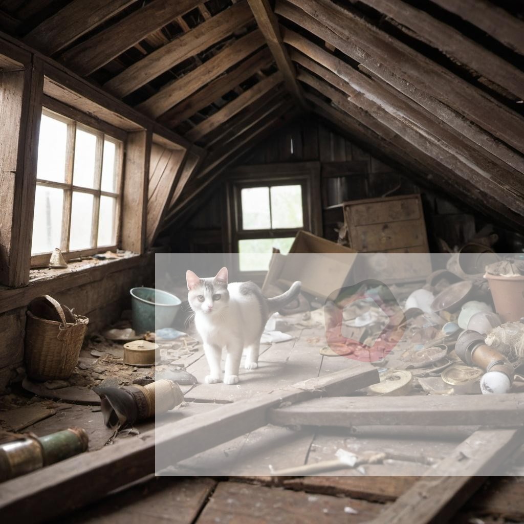 A cat exploring an old attic filled with forgotten treasures