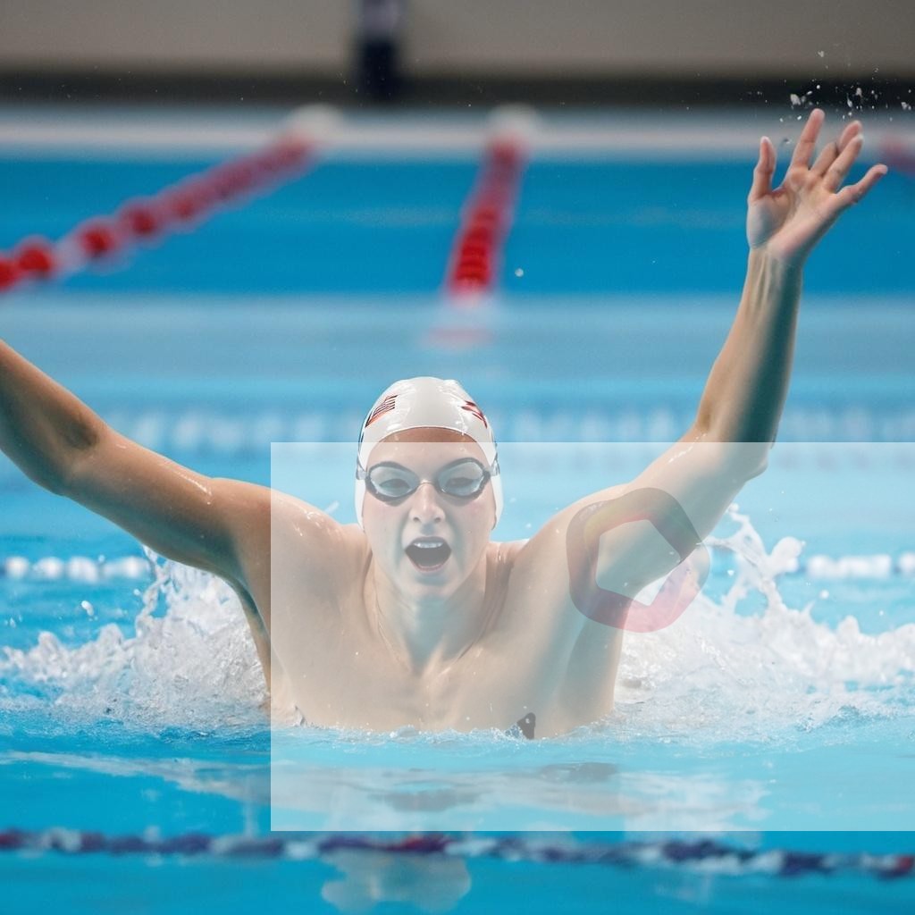 A swimmer performing the butterfly stroke in an Olympic-sized pool