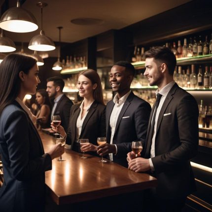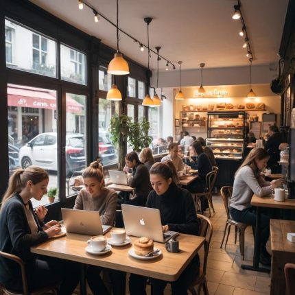 A barista making pour-over coffee in a trendy cafe with industrial decor