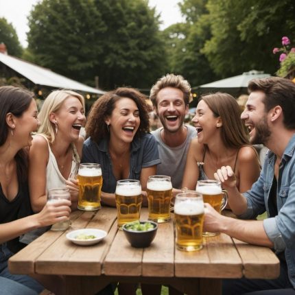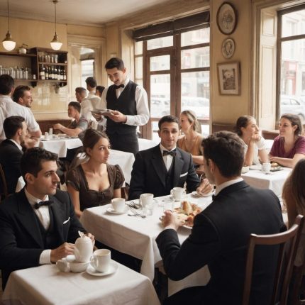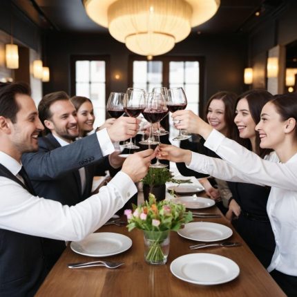 A group of coworkers toasting at a business lunch in a chic restaurant