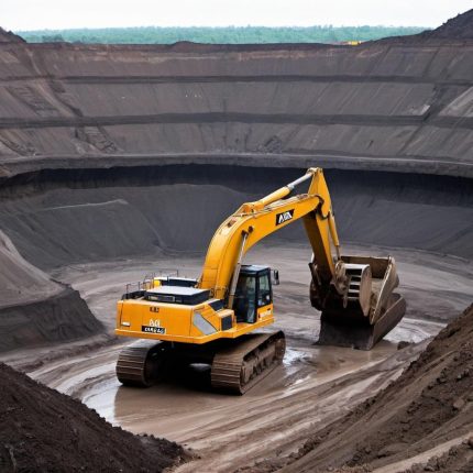 A coal mining operation with large trucks transporting coal