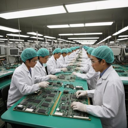A computer chip manufacturing facility with precision machinery