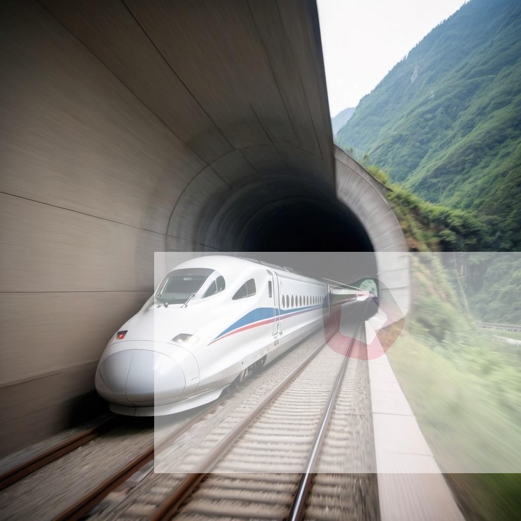Home Transportation A bullet train traveling through a mountain tunnel at high speed