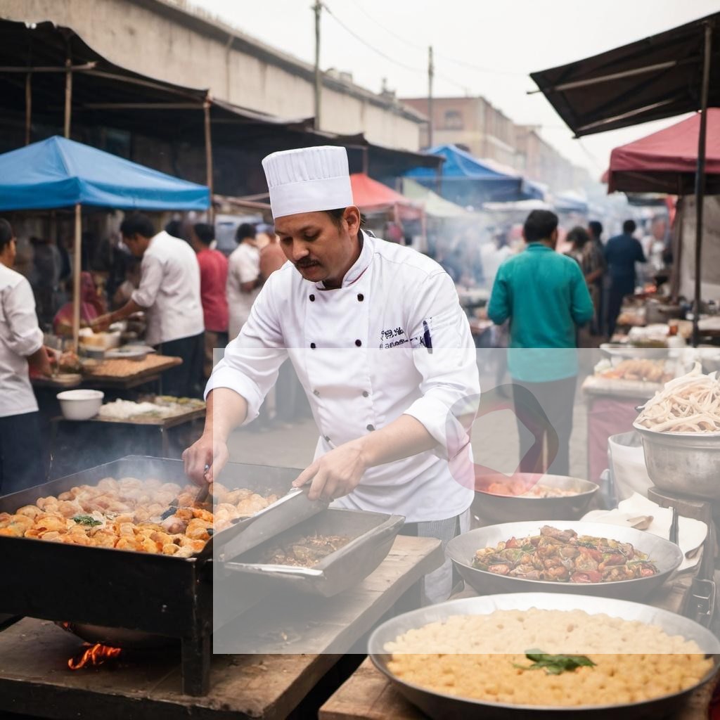 Home Restaurants A chef cooking street food at a bustling outdoor market