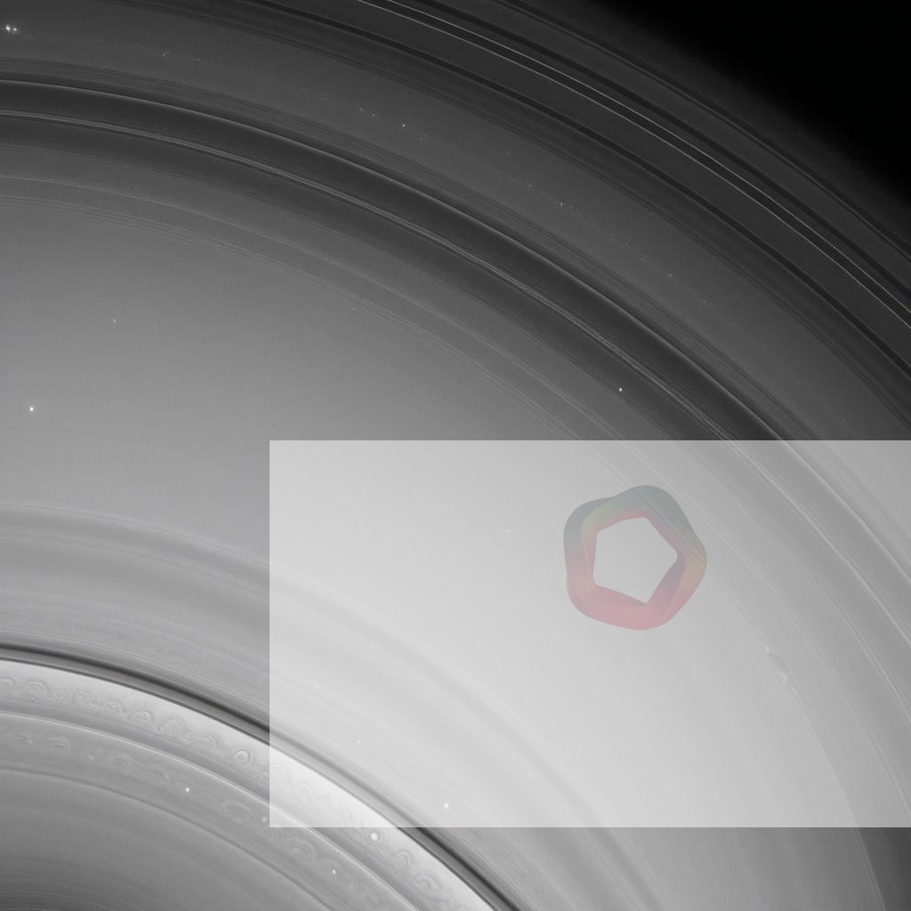A close-up of the rings of a distant planet with icy particles