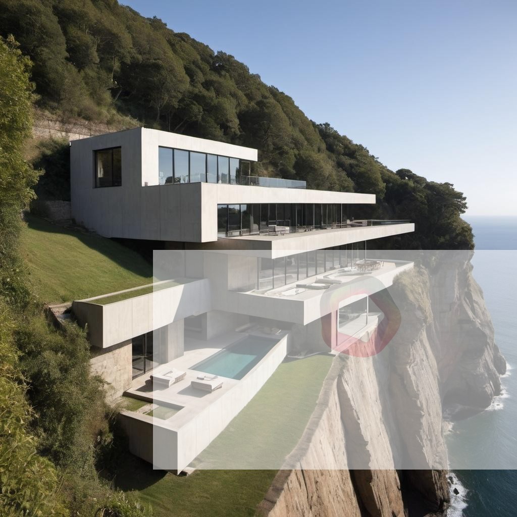 A contemporary house built into a cliffside with a stunning view