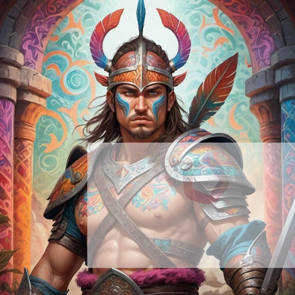 This image depicts a fantasy scene with a warrior, in a cartoonish style, featuring detailed textures. It captures the essence of the theme with vivid details and a captivating atmosphere, making it perfect for various creative projects.