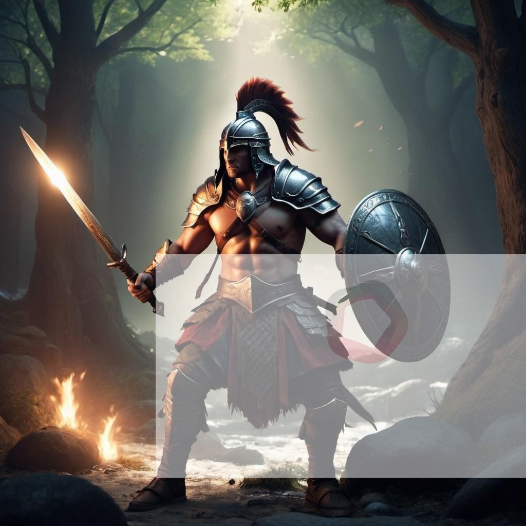This image depicts a fantasy scene with a warrior, in a cartoonish style, featuring glowing lights. It captures the essence of the theme with vivid details and a captivating atmosphere, making it perfect for various creative projects.