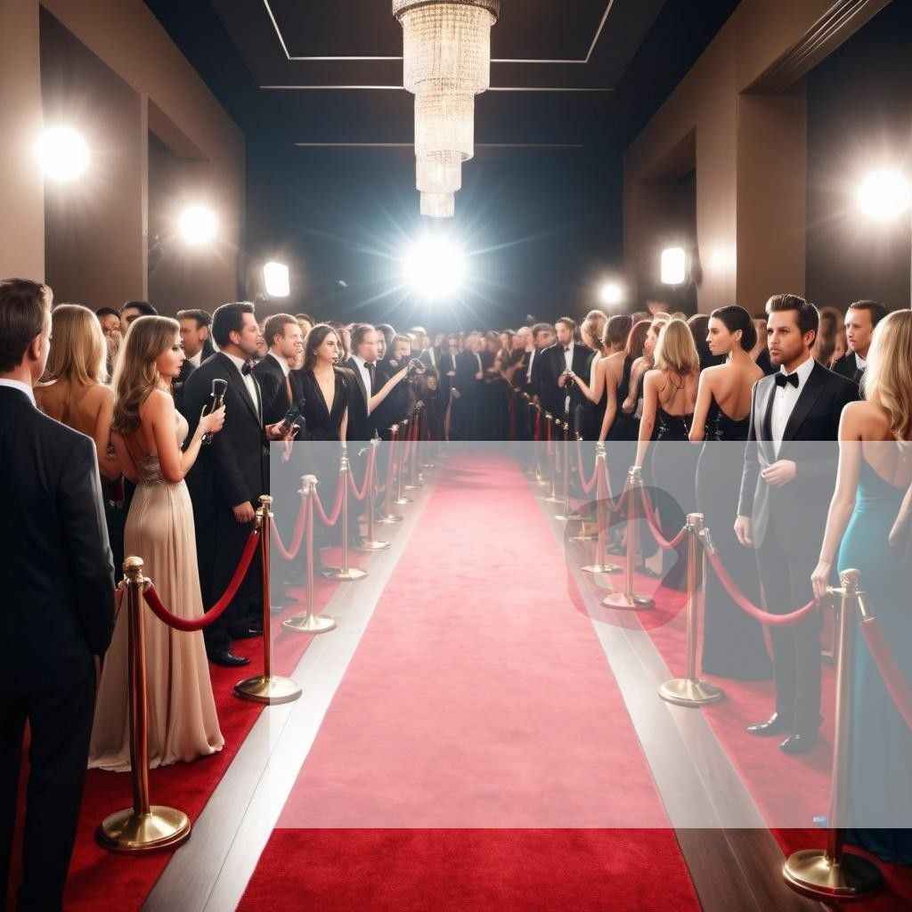 A glamorous Hollywood red carpet even with paparazzi and celebrities in elegant outfits