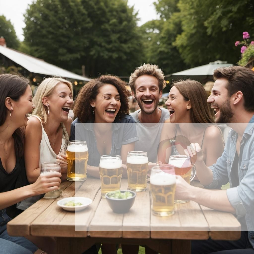 Be the first to review “A group of friends laughing together at a long table in a beer garden” Cancel reply