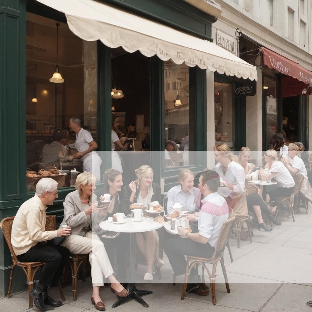 Home Restaurants A group of people enjoying coffee and pastries at a sidewalk cafe