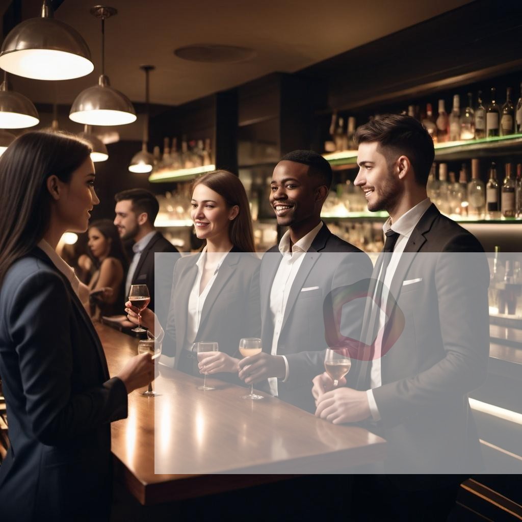 A barista making pour-over coffee in a trendy cafe with industrial decor