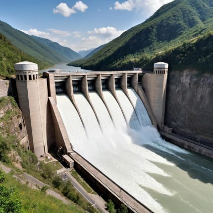 A wind farm with massive turbines spinning in a windy field