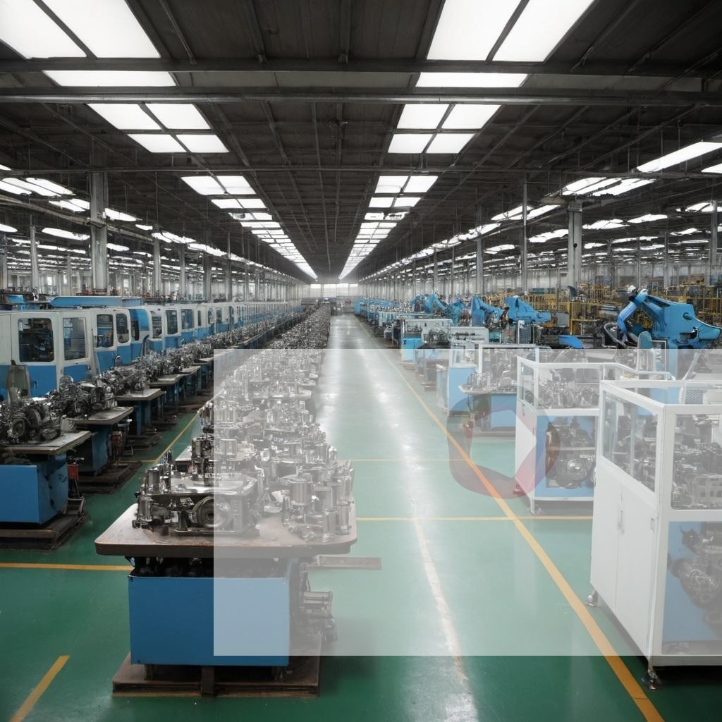 A high-tech semiconductor manufacturing facility with clean rooms