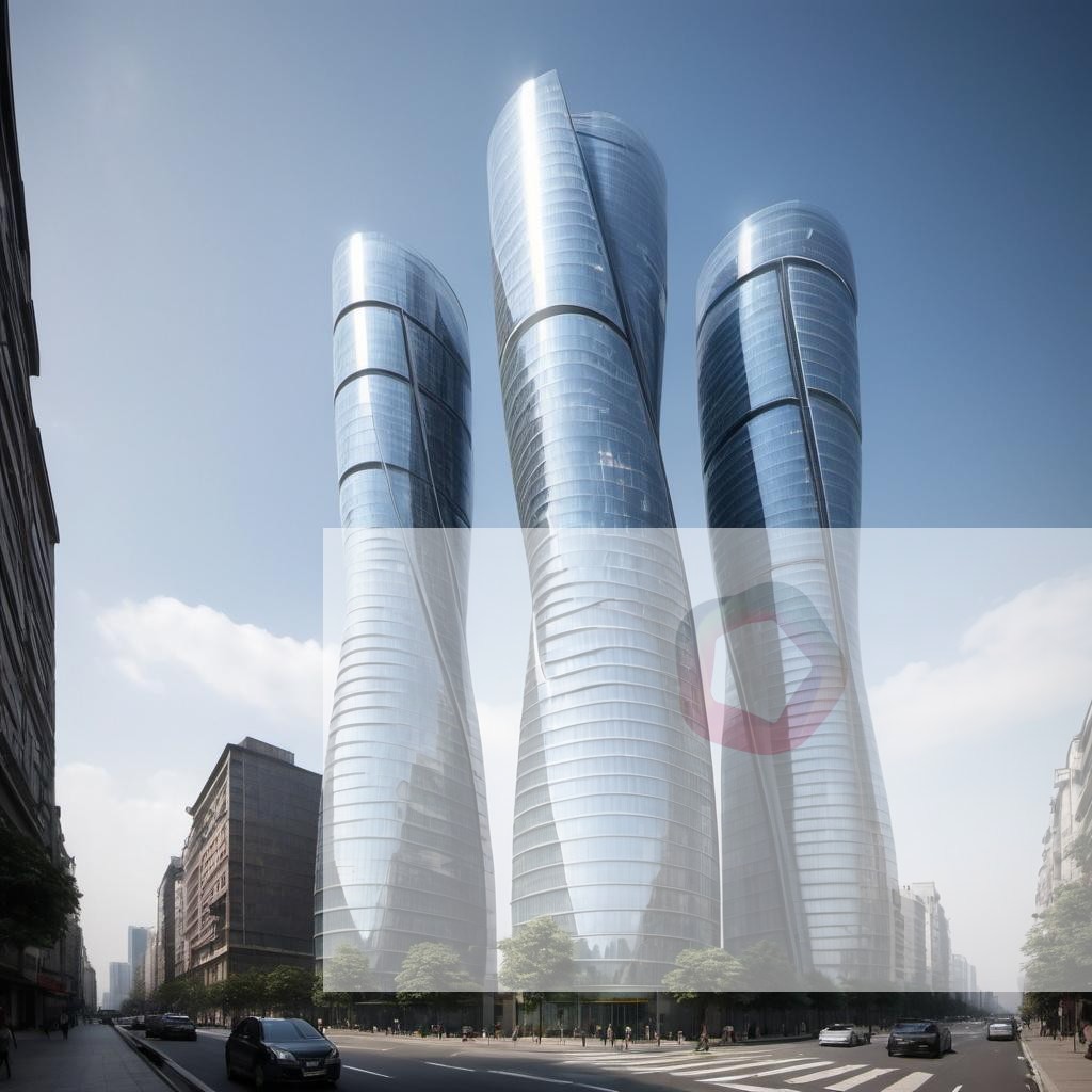 A high-tech skyscraper with a twisting design and reflective glass windows