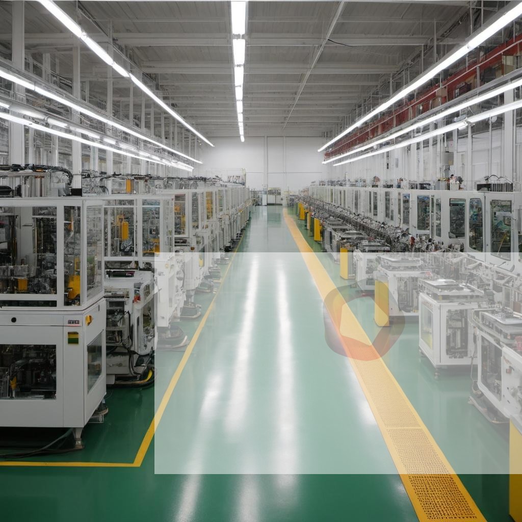 A modern electronics manufacturing plant producing circuit boards and devices