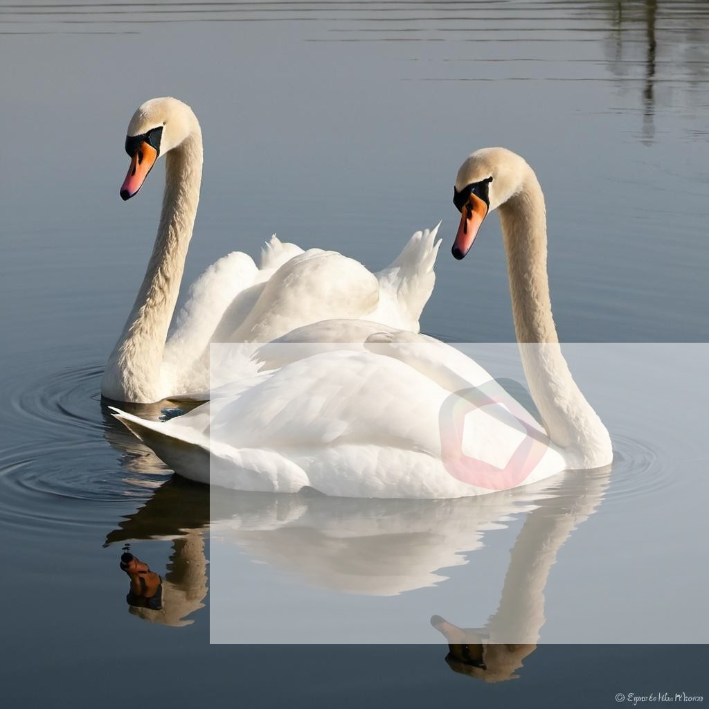 A pair of swans swimming gracefully on a calm lake