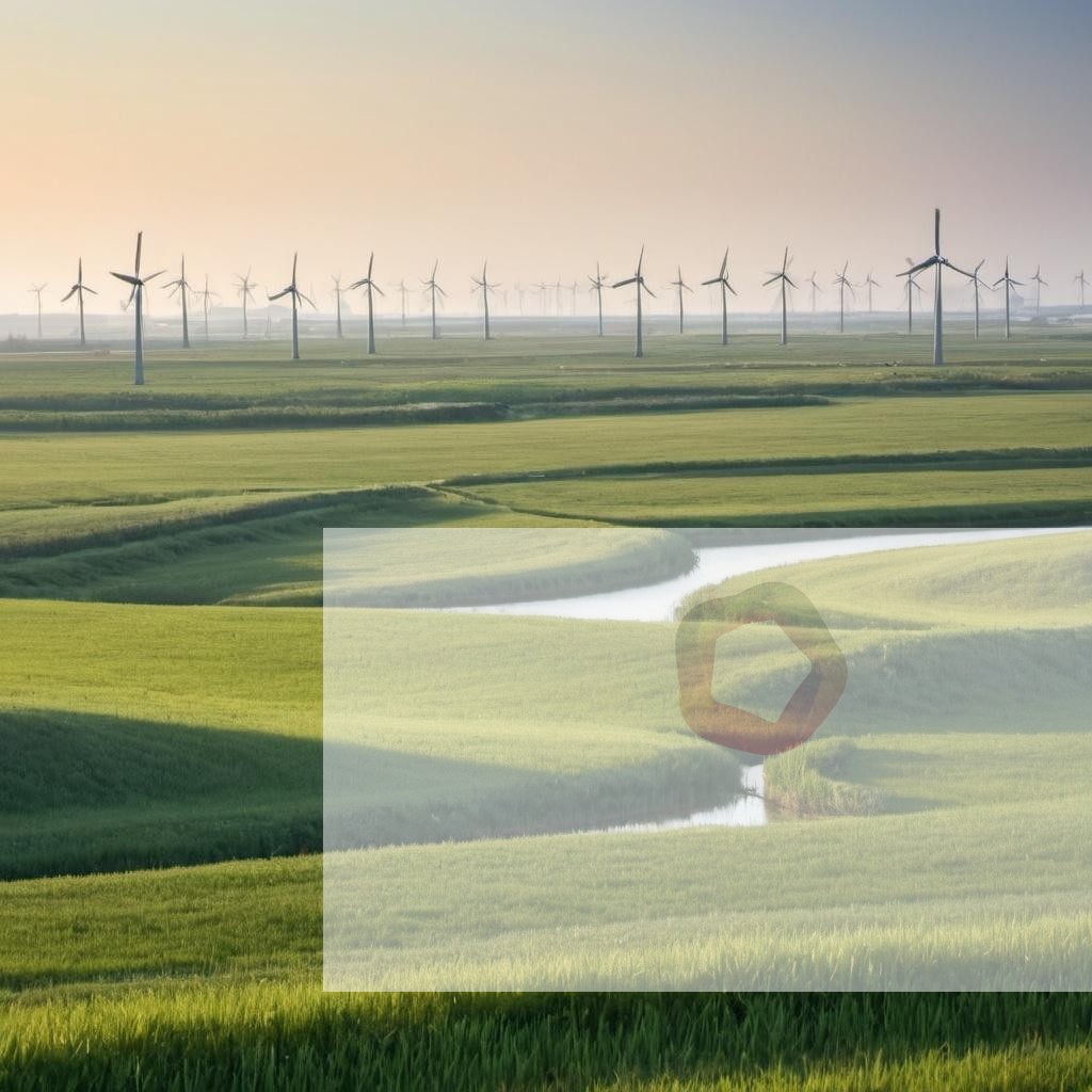 A serene landscape with windmills turning slowly in the breeze