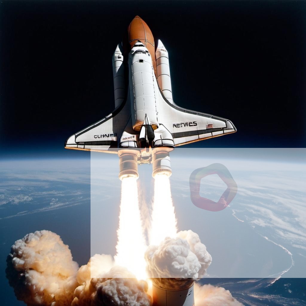 A space shuttle re-entering Earth’s atmosphere with flames trailing behind