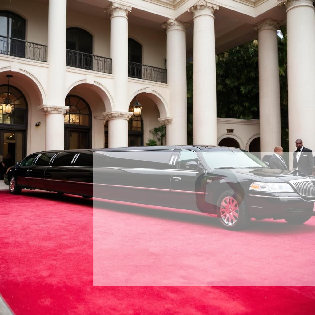 A stretch limousine parked outside a red carpet event