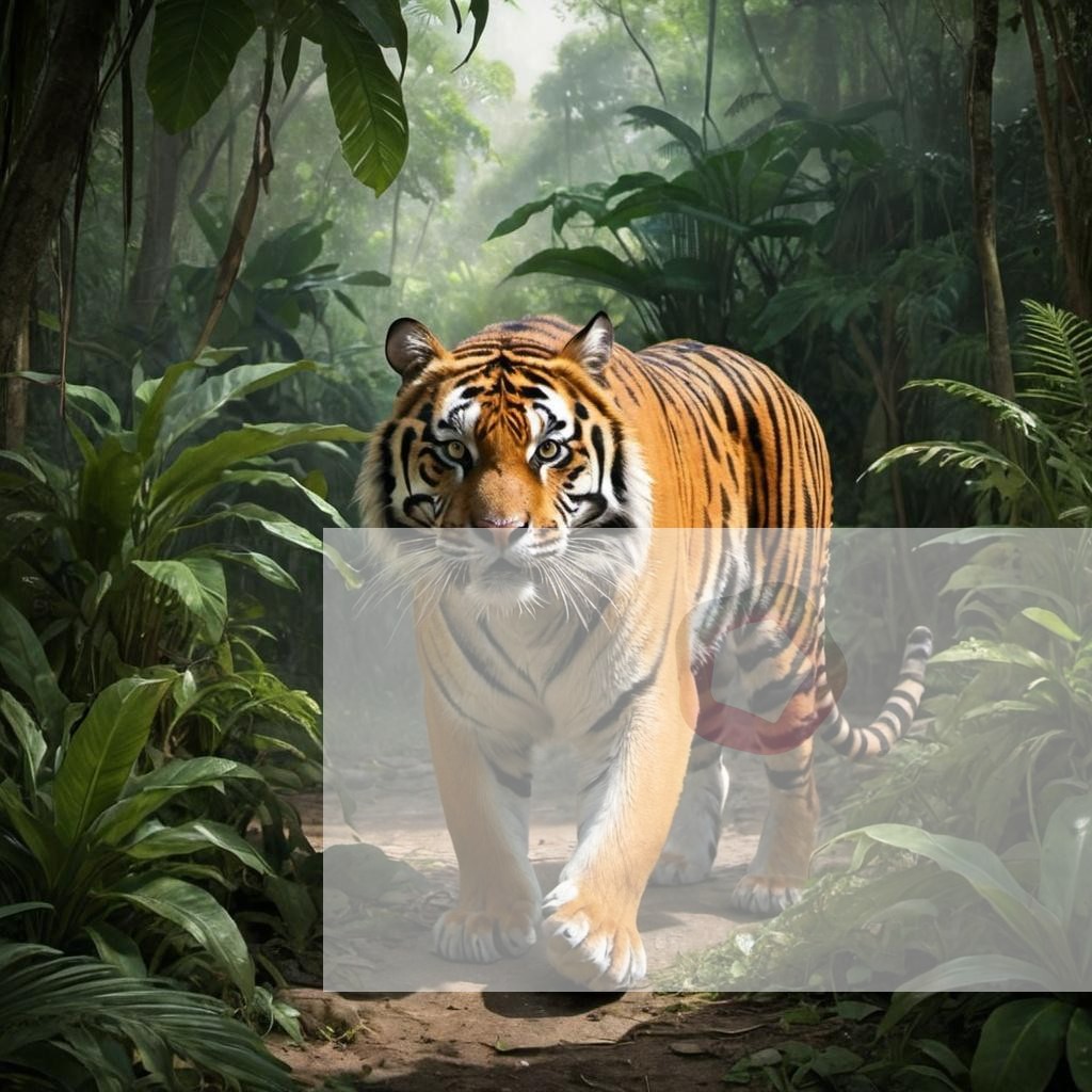 A tiger prowling through the jungle with intense eyes